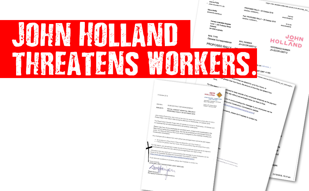 “John Holland Group has been caught out trying to intimidate its workforce and punish them for participating in democratic protests.